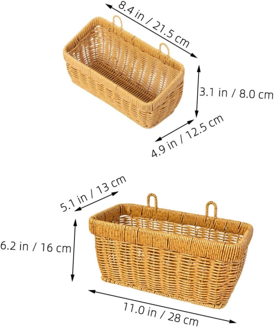 Package Include 1 x basket large 1 x basket small Features -Versatile storage woven basket: ideal for storing garlic, ginger, onions, eggs, fruits, and more, allowing for easy categorization and quick access to kitchen essentials onion basket for kitchen -Elegant faux rattan craftsmanship: features a handwoven faux rattan design that adds a touch of sophistication to your kitchen while blending seamlessly with various decor styles fruit and vegetable basket - and sturdy material: built with strong materials that resist deformation, ensuring use and reliable performance even with heavier items woven wall basket -Easy maintenance: smooth surface allows for effortless cleaning; simply wipe with a damp cloth and maintain a clean storage solution hanging vegetable baskets for kitchen -Size:28.00X16.00X13.00cm/11.00X6.29X5.11in fake rattan basket -Color:Chocolate wall hanging vegetable holder -Size:21.50X12.50X8.00cm/8.45X4.91X3.14in hanging produce basket -Hanging produce basket: optimizes wall space to free up countertops, creating and more organized kitchen environment. perfect for compact kitchens or maximizing storage efficiency kitchen organizer and storage -Material:Plastic fruit basket for kitchen hangingGoods Informationfake rattan basket Designed for wall mounting, it provides a space-saving way to store items like ginger, garlic, onions, eggs, and fruits, keeping your kitchen neat and accessible.imitation rattan storage basket This hand-woven hanging basket set is crafted with imitation rattan material, providing a and stylish solution for organizing your kitchen essentials