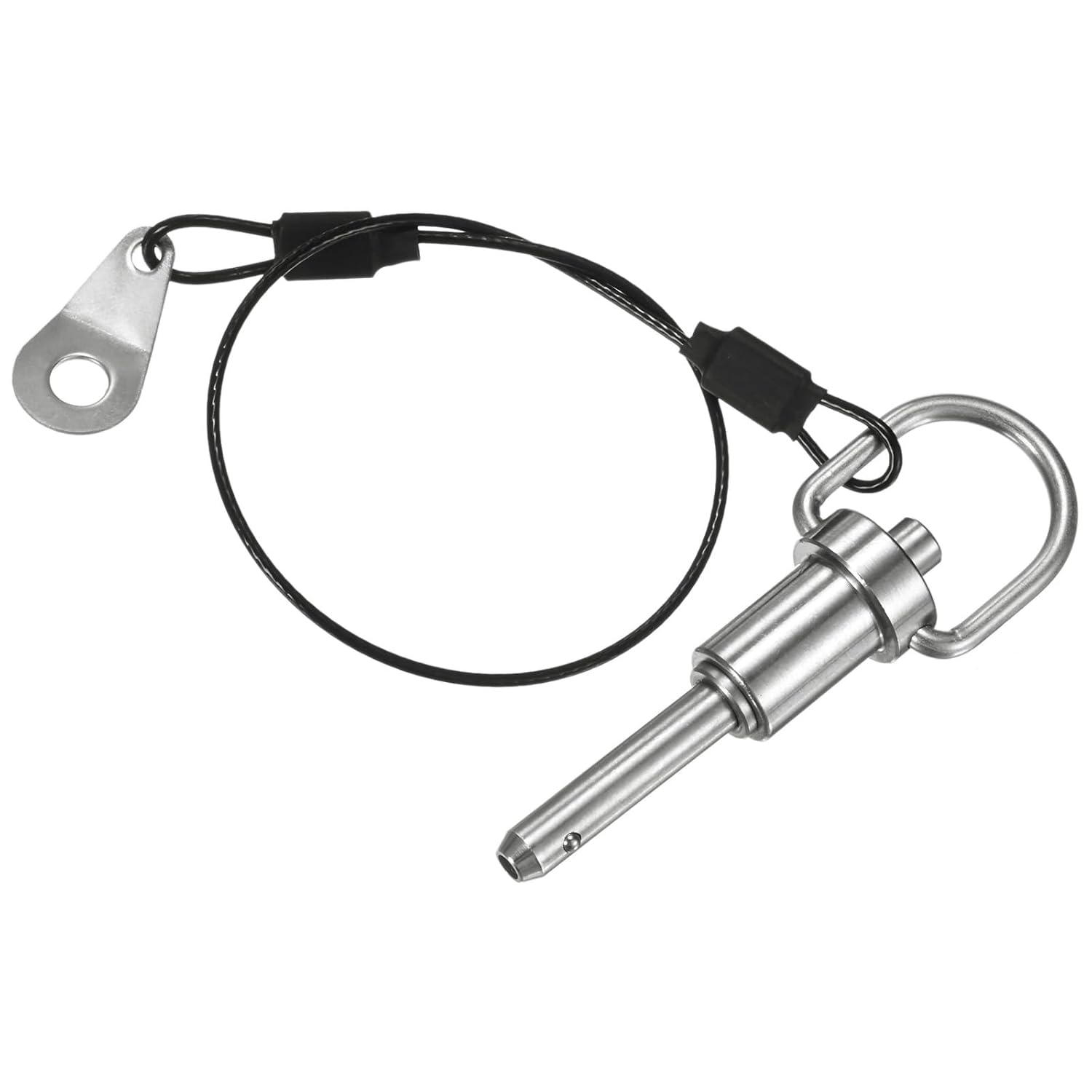 PRODUCT APPLICATIONSPush-Button ball Locking Pin is good for locating, fastening, adjusting, removing, and aligning accessories on equipment in various areas. Widely used in speaker manufacturing, industrial settings, fixture assembly, exercise machines, trailer bumpers, aviation production, quick bridge construction, OEM equipment manufacturing, and more.PRODUCT DETAILS & INCLUDE√ Color: Silver√ Material: 304 Stainless Steel√ Pin Diameter: 5 mm/ 0.2 inch (3/16"")√ Usage Length: 20 mm/ 0.79 inch√ Total Length: 56 mm/ 2.2 inch√ Package Includes: 1Pcs x Ring Ball Locking Pin with Lanyard CablePRODUCT ADVANTAGES1. This ball locking pin is made of durable 304 stainless steel, which is high in hardness, rust-resistant, wear-resistant, and corrosion-resistant, with a long service life. The ball cap with a D ring is smooth, beautiful, and not easy to scratch.2. This quick release pin can be used as a quick lock fastener to quickly and easily lock, tighten, adjust, and secure the connection. Designed with a lanyard line to prevent loss and also for easy carrying.INSTALLATIONWhen installing, press the button on the handle to retract the steel ball at the pin head, and then insert the lock pin into the designated hole. When the button is released, the steel ball engages to prevent the pin from falling out of the hole.1